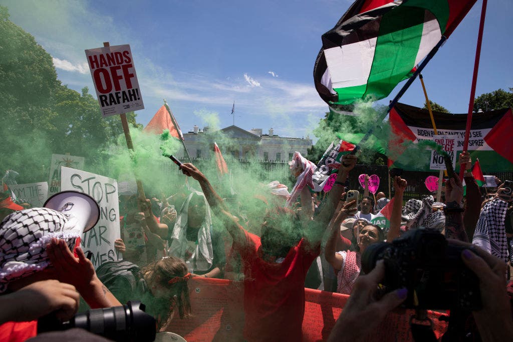 Protesters outside the White House were heard chanting slogans against Zionism and calling for the eradication of Israel, with phrases like “We don’t want no two state, we’re taking back ’48” referencing the establishment of Israel in 1948 and the subsequent displacement of Palestinians.