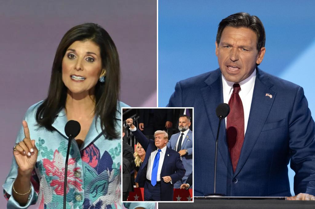 DeSantis and Haley support Trump at RNC after tough primary battle.