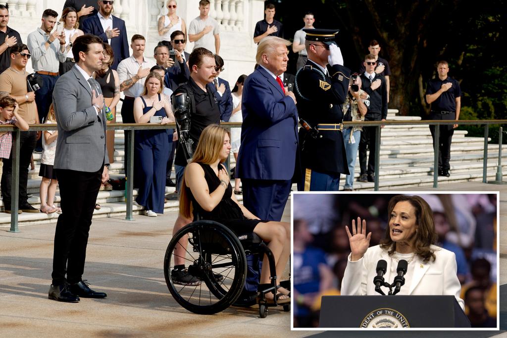 Families of fallen soldiers criticize Harris in videos after she criticizes Trump’s visit to Arlington.