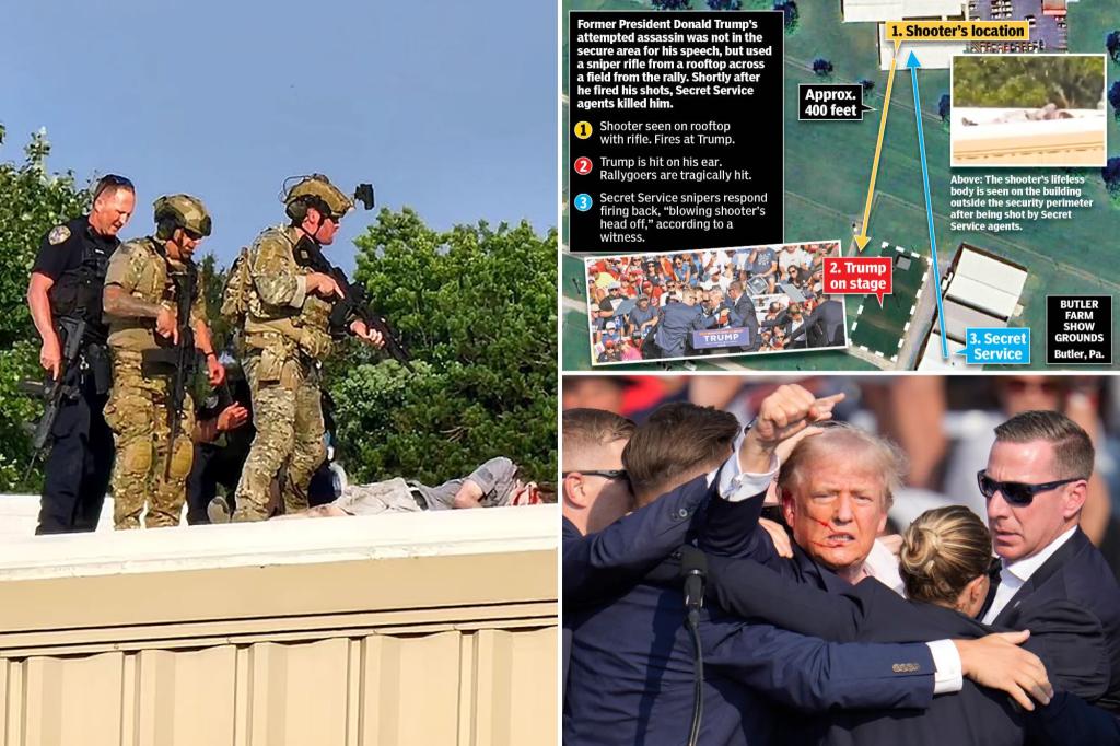 Former President Donald Trump was shot at by a sniper from a manufacturing plant roof 130 yards away.