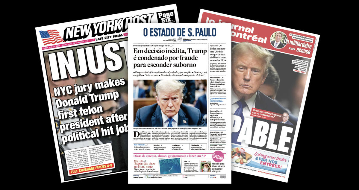 The guilty verdict announced in New York City made headlines around the world with several front pages showcasing Trump’s face in court.