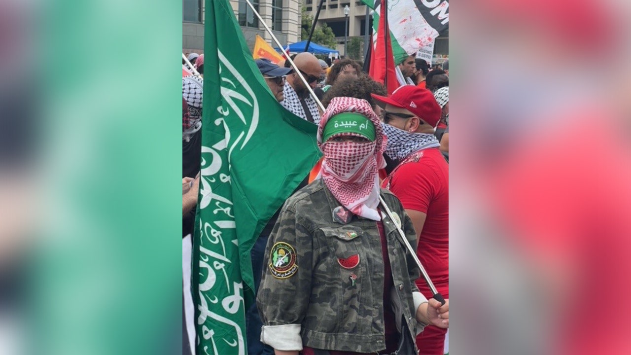 At Union Station, protesters burned an American flag and defaced a Christopher Columbus statue with the ominous message “Hamas is coming.” They also took down the American flag, replacing it with the Palestinian flag in a bold statement of their cause.