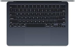 The MacBook Air with the M3 chip is a lightweight and ultra-thin laptop that offers blazing-fast performance for both work and play. With a powerful 8-core CPU and up to 10-core GPU, the Apple M3 chip ensures smooth running of tasks. The laptop boasts an impressive 18 hours of battery life, allowing you to work all day without needing a power adapter. The 13.6-inch Liquid Retina display supports 1 billion colors, providing a vibrant viewing experience. The MacBook Air features a 1080p FaceTime HD camera, three mics, and four speakers with Spatial Audio for excellent video calls and sound quality. With two Thunderbolt ports, a headphone jack, Wi-Fi 6E, Bluetooth 5.3, and a MagSafe charging port, you can easily connect to other devices. Additionally, MacBook Air seamlessly integrates with other Apple devices for a more cohesive user experience.