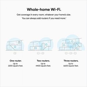 The Google Nest Wifi is a whole-home mesh Wi-Fi system that is easy to set up and provides fast, reliable Wi-Fi coverage up to 4400 square feet. It includes one router unit that can be expanded by adding more Nest Wifi routers or points for additional coverage. The router can handle up to 200 connected devices and is capable of streaming multiple 4K videos at a time. The system intelligently works behind the scenes to ensure fast Wi-Fi and automatically updates itself for new features and security. The Nest Wifi is set up through the app and allows for features such as creating a guest network, prioritizing devices for faster speeds, and managing parental controls. The product is compatible with Google Wifi and includes Ethernet ports on each router for additional connectivity options.