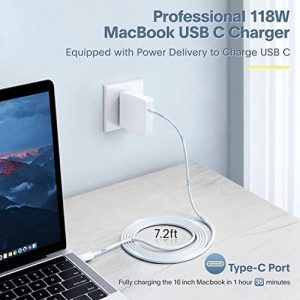 The Sunveza 118W USB C charger is a perfect replacement charger for new USB C port MacBook models, offering high-speed charging with a specialized 5A USB C to C cord included. It has wide compatibility with various MacBook models, iPad, smartphones, and other USB C devices. The charger is designed with advanced features for safe and reliable charging, including protection against over-current, over-voltage, and short circuits. With a foldable design and portable size, it is convenient for home, office, business, and travel use. The charger also supports data syncing and has a long 7.2ft cable for easy use in any location. Overall, it provides high-efficiency fast charging with advanced PD 3.0 technology, ensuring fast and stable energy inflow for various devices.