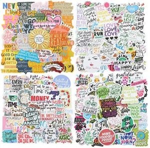The YOMELA Inspirational Stickers Motivational Stickers pack includes 200 high-quality waterproof vinyl stickers with various designs, featuring motivational words to inspire positivity. The stickers are 1.5-3.5 inches in size and can be used on water bottles, laptops, phones, journals, and more. They are easy to use, with adhesive backing that sticks to smooth surfaces easily. The stickers are both waterproof and removable without leaving residue. They make a great gift for women, adults, and young people to inspire and motivate them. Customer service is available to address any questions or concerns. These stickers are perfect for personalizing belongings and spreading positive messages wherever you go.