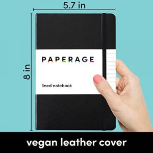 This best-selling notebook journal is a classic 5.7″ x 8″ vegan leather journal with a durable and water-resistant cover, 160 college ruled lined pages, inner expandable pocket, sticker labels, ribbon bookmark, and elastic closure band. Made with premium 100 gsm acid-free paper, this journal is thicker than average notebooks, preventing ghosting and bleed-through. The lay-flat design makes it easy to write for both right and left-handed users, perfect for journaling, note taking, and planning. Available in a variety of vibrant and bold colors, this journal is ideal for school, college, or work. It also includes an inner pocket for storage and sticker labels for personalization. Perfect for use as a travel journal, diary, or planner notebook.