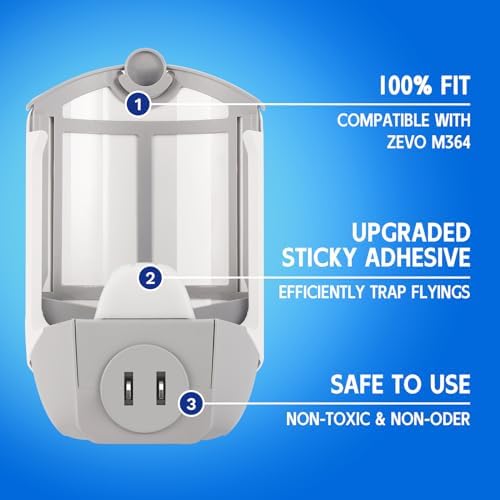 The product is a refill cartridge for the ZEVO Plug-in Light M364 and Max. It includes 8 pieces of refill cartridges with upgraded adhesive for a strong sticky effect like the original refill. It is easy to refill by peeling, plugging, and replacing the refill when it is filled. The product is safe to use, nontoxic, and tasteless, making it safe for kids and pets. It provides 24/7 protection and helps eliminate mess in the house. The friendly customer service is available for any problems encountered. The product has received high ratings of 4.7 out of 5 stars from 526 customers. It is priced at $12.59, $17.99, $24.99, and $39.99 for different packages.