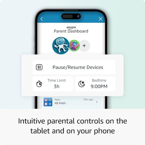 The product is a fully featured tablet designed for kids aged 6-12, including a 10.1″ 1080p Full HD display, parental controls, a kid-proof case, and a 2-year worry-free guarantee. Parents can manage screen-time limits, educational content, and app store requests from their phone. The tablet comes with a 1-year subscription to Amazon Kids+ with ad-free books, games, videos, and apps. Safety features are provided by partnering with family trust experts. The tablet has a large display, 3 GB RAM, and 13 hours of battery life. It includes a filtered web browser, video and voice calling, and a protective case. The tablet also offers 32 GB of storage with up to 1 TB of expandable storage. Additionally, there is a 2-year worry-free guarantee included for free replacement in case of damage.