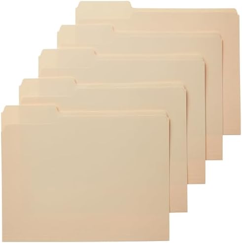 Amazon Basics 1/3-Cut Tab, Assorted Positions File Folders, Letter Size, Manila – Pack of 100