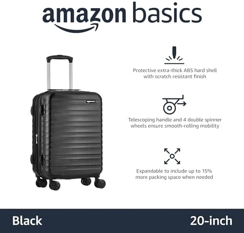 Amazon Basics Expandable Hardside Carry-On Luggage, 20-Inch Spinner with Four Spinner Wheels and Scratch-Resistant Surface, Black