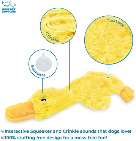 Best Pet Supplies Crinkle Dog Toy for Small, Medium, and Large Breeds, Cute No Stuffing Duck with Soft Squeaker, Fun for Indoor Puppies and Senior Pups, Plush No Mess Chew and Play – Yellow