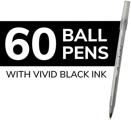 BIC Round Stic Xtra Life Ballpoint Pens, Medium Point (1.0mm), Black, 60-Count Pack, Flexible Round Barrel For Writing Comfort (GSM609-BLK)