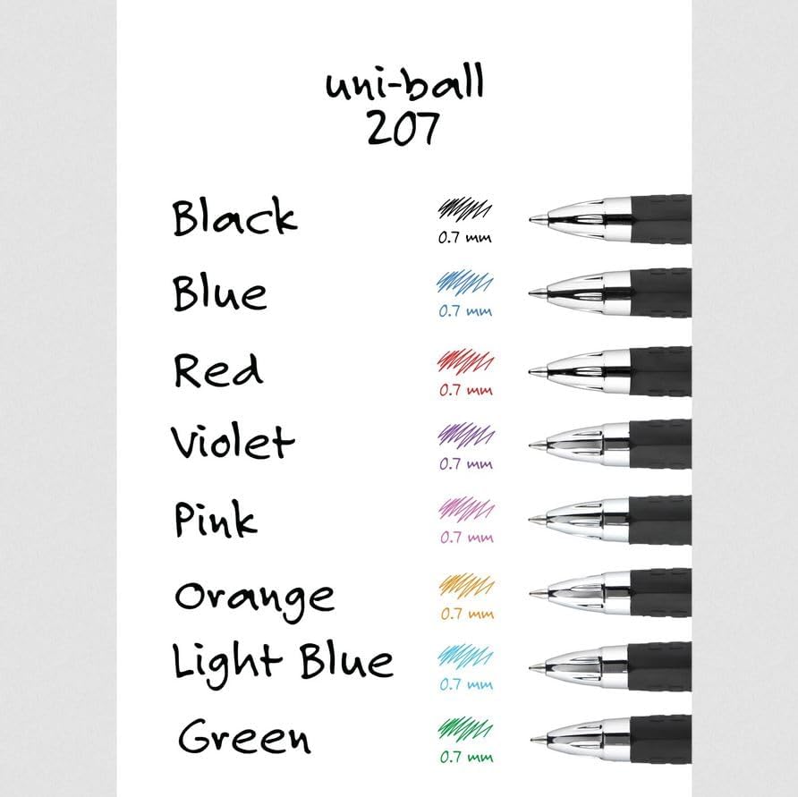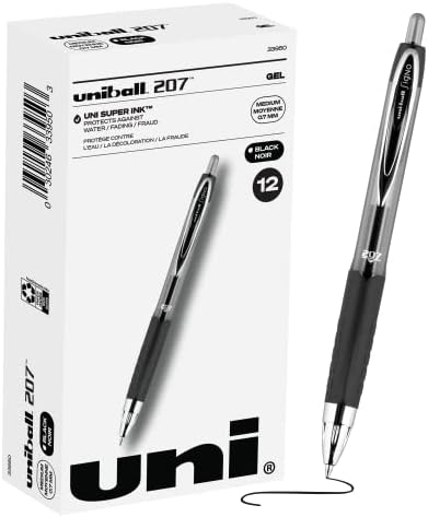 Black Retractable Gel Pens 12 Pack with Medium Points, Uni-Ball 207 Signo Click Pens are Fraud Proof and the Best Office Pens, Nursing Pens, Business Pens, School Pens, and Bible Pens