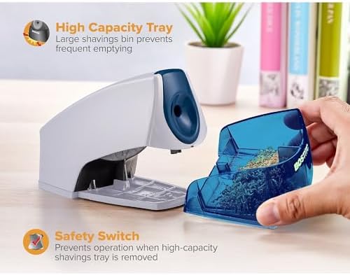 Bostitch Office Personal Electric Pencil Sharpener, Powerful Stall-Free Motor, High Capacity Shavings Tray, 7yr Warranty, Blue