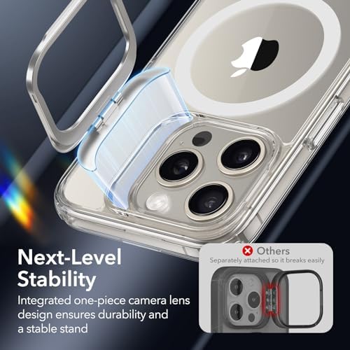 ESR for iPhone 15 Pro Case, Compatible with MagSafe, Military-Grade Protective Case, Built-in Stash Stand Phone Case, Scratch-Resistant Back Cover, Classic Series, Clear