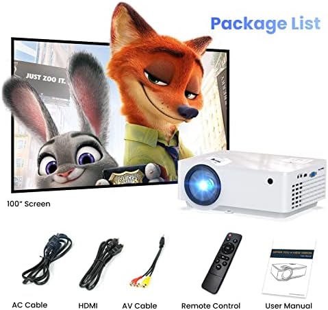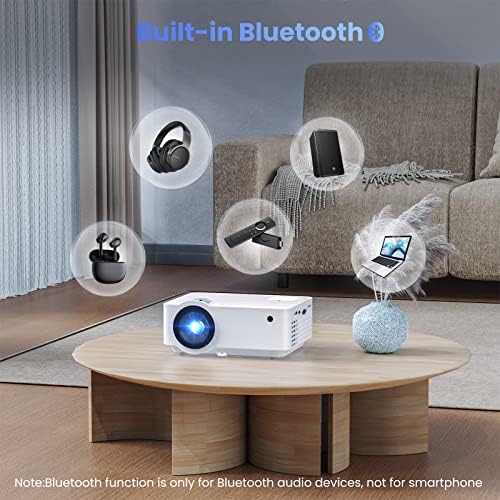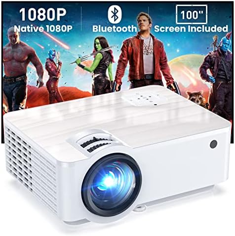 GROVIEW Projector, 1080P Bluetooth Mini Projector with 100” Projector Screen, 9500 LUX Portable Outdoor Movie Projector for Phone, Compatible with VGA/HDMI/USB/SD/Laptop/Fire Stick/PS5
