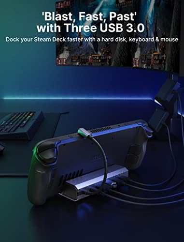The Steam Deck Accessories Docking Station is a 6-in-1 device that enhances your gaming experience with the Steam Deck and ROG Ally. It includes a 4K@60Hz HDMI output, Gigabit Ethernet input, three USB-A 3.0 ports, and a USB-C port for charging. The docking station supports 100W Max power delivery, allowing for full-speed charging of your devices. It also features gigabit Ethernet for fast online multiplayer gaming and quick file transfers. The docking station is compatible with Steam Deck (OLED), ROG Ally, iPads, and Android phones with USB-C ports. Please note that it is not compatible with the AYANEO console. Enhance your gaming setup with the Steam Deck Accessories Docking Station for a smoother and more immersive gaming experience.