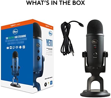 Logitech for Creators Blue Yeti USB Microphone for Gaming, Streaming, Podcasting, Twitch, YouTube, Discord, Recording for PC and Mac, 4 Polar Patterns, Studio Quality Sound, Plug & Play-Blackout