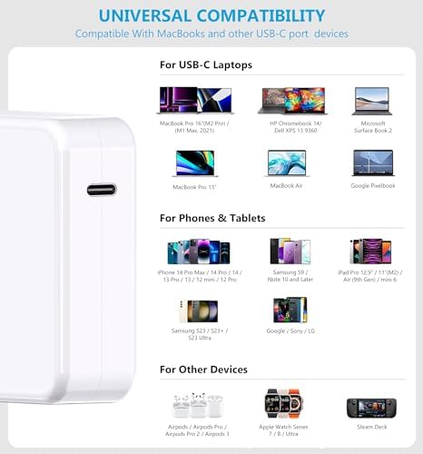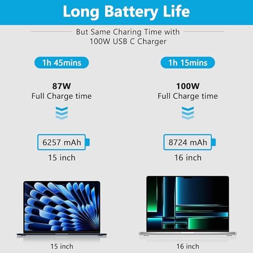 Mac Book Pro Charger-100W USB C Charger Fast Charging for MacBook Pro/MacBook Air 16 15 14 13 Inch,iPad Pro and All USB C Device,Travel Computer Power Adapter Cord with 5A USB C-C Charger Cable