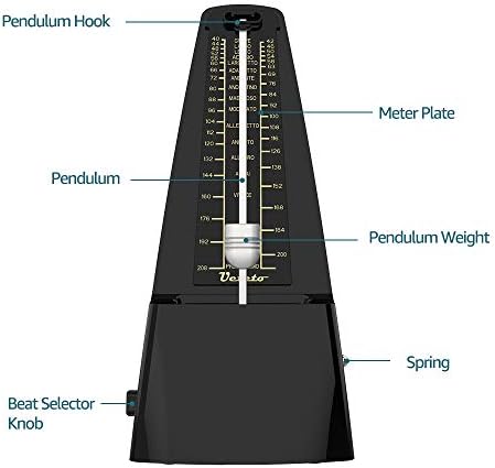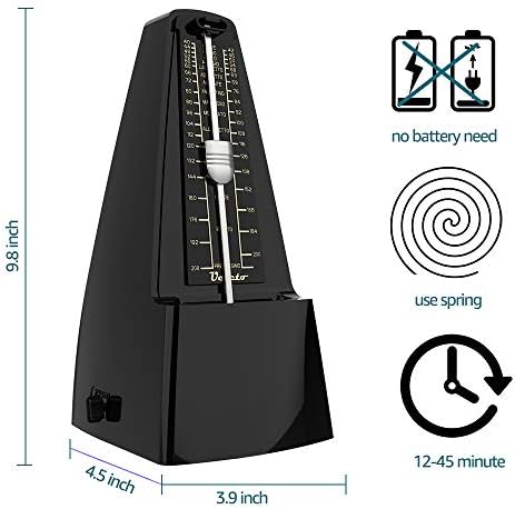 The Cantus Metronome is a mechanical metronome that helps you keep track of tempo and rhythm while playing music. It is suitable for most musical instruments and helps with developing rhythm, maintaining tempo, playing accurately, and increasing musical awareness. The metronome features audible click and bell ring for rhythm maintenance, a wind-up mechanism for metrical beats (no battery required), tempo range of 40-208 bpm, and beat selections of 0, 2, 3, 4, 6. It is easy to use for both children and beginners. The package includes the metronome and a user manual. It is important to avoid using the metronome in dusty or damp places, protect it from drops or attacks, and clean it with a soft cloth. The product has received positive customer reviews and is priced at $21.99.
