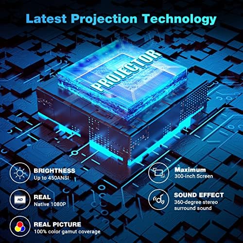 Native 1080P Projector with 5G WiFi Bluetooth (with Tripod), 4K Supported Home Projector, Portable Outdoor Projector with Max 300″ Display, Movie Projector Compatible with TV Stick, HDMI, Phone
