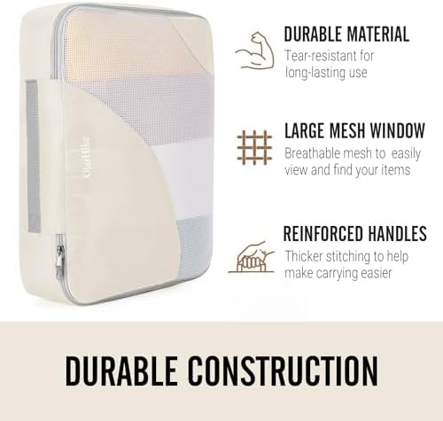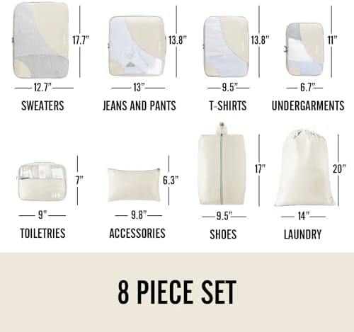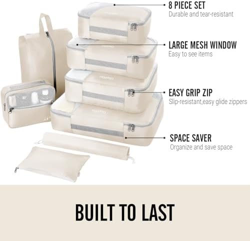 OlarHike 8 Packing Cubes for Travel, 4 Sizes (Extra Large, Large, Medium, Small) for Luggage Organizer Set, Travel Accessories and Essentials, Carry On Suitcases, Cream