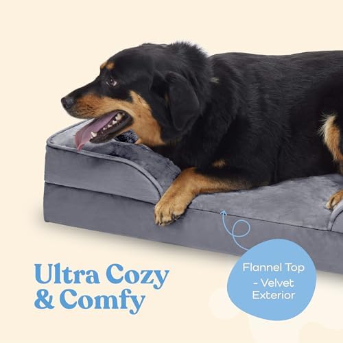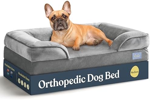 Orthopedic Sofa Dog Bed – Ultra Comfortable Dog Beds for Medium Dogs – Breathable & Waterproof Pet Bed- Egg Foam Sofa Bed with Extra Head and Neck Support – Removable Washable Cover & Nonslip Bottom.
