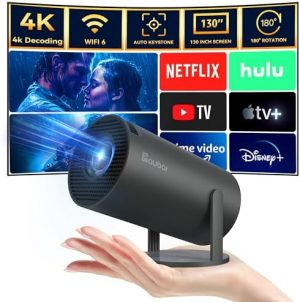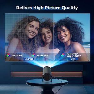 This mini portable projector from the brand is a compact and lightweight device that allows you to enjoy movies, videos, and games anywhere you go. It supports 4K/1080P HD video and has a native resolution of 720P. The projector features advanced LED technology for bright and clear projections, and it can be connected to WiFi 6, 2.4G and 5G networks, and Bluetooth 5.2 devices. The projector can rotate 180 degrees for flexible viewing options and has automatic keystone correction for the perfect picture. It also features premium 360-degree sound for immersive audio experiences. Additionally, the projector has lower noise levels and can be easily connected to multiple devices for a complete entertainment setup.