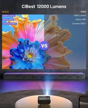 Cibest is a leading brand in the projection systems industry, focusing on image and color processing technology. The CiBest mini projector offers optimal visual performance with enhanced brightness and native 1080P Full HD resolution. It is compatible with a wide range of devices, from TV sticks to gaming consoles, and offers an immersive viewing experience with a large screen size ranging from 30″ to 200″. The built-in stereo speakers provide powerful audio effects, with the option to connect to a surround sound system for an even better audio experience. This portable projector is lightweight and operates quietly, making it ideal for on-the-go use. With a 5-year return policy and lifetime repair warranty, customers can buy with confidence.