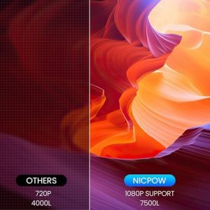 NICPOW is a young brand dedicated to providing cost-effective projectors for customers to have a wonderful shopping experience. Their vision is to bring joy to families and friends with their projectors. The mini projector supports 1920x1080P resolution, with a projection distance of 3.3 to 16 feet and a viewing size of 32” to 240”. It also features 6000:1 color contrast, 7500 lux brightness, keystone correction, and a 65,000-hour lamp life for a superior viewing experience. The projector also has 2x3W HiFi stereo speakers, wide compatibility with various devices, and easy phone connection options. With a simple setup and lifetime technical support, NICPOW aims to provide a hassle-free and enjoyable viewing experience for all.