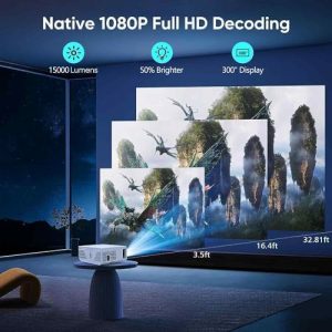 The FUDONI projector is a high-quality sound projector with built-in dual HiFi speakers, making it ideal for indoor and outdoor use. It has 5.1 Bluetooth connectivity, allowing you to easily connect to soundbars, headphones, and other audio equipment. The projector supports screen mirroring for iOS, Android, and Windows devices without the need for extra adapters or apps. With a resolution of 1920 x 1080 and support for 4K video playback, it offers clear and bright images with great color accuracy and a 10000:1 contrast ratio. The projector can display a maximum 300″ image size and features a 100-50% zoom function for optimal viewing size. It is portable, comes with a scratch-resistant case, and can be easily carried for various outdoor activities and business meetings.