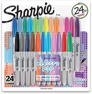 Sharpie Electro Pop Fine-Point Permanent Markers are charged with color and designed to inspire creativity. These versatile markers can be used on a variety of surfaces, including paper, plastic, metal, and more. The bold fine point creates vibrant and detailed marks that stand out. The ink is proudly permanent, quick-drying, and resistant to fading and water. With 24 markers in assorted Electro Pop and Classic colors, these Sharpie markers allow for endless possibilities for self-expression and artistic projects. Make a statement and add a pop of color to your creations with these iconic and enduring markers.
