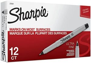 Sharpie Ultra Fine Point Permanent Markers are bold, permanent markers that provide precision and vibrant color. The iconic ink dries quickly and resists fading and water, creating long-lasting creations on various surfaces like paper, plastic, and metal. The ultra-fine point offers extreme control for detailed work. This set includes 12 black Sharpie markers that are AP certified and versatile for a wide range of writing and drawing projects. With Sharpie markers, your stories will stand out and endure against time and wear, unlike other imitations. Let your creativity shine with Sharpie Ultra Fine Point Permanent Markers.