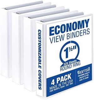 Samsill’s 1 1/2-Inch Binder is a multipurpose business and school binder that offers economical paper storage and organizational value. This important document binder features a clear overlay along the front, back, and spine for customization. Made of durable polypropylene/vinyl and chipboard, this three ring binder is ideal for light daily use at home, school, and the office. The binder holds up to 325 8.5 by 11 inch letter-sized sheets and features non-stick materials to prevent ink transfer or lifting copy. The back-lid-mounted round binder rings allow pages to lay flat while providing a professional look. With 2 clear interior pockets for additional storage, this binder is perfect for presentations, projects, and more. Samsill has been manufacturing quality USA-made binders since 1953.