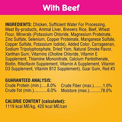 PEDIGREE CHOPPED GROUND DINNER is a soft, wet dog food available in beef or filet mignon flavor. It provides the perfect balance of vitamins and minerals for adult dogs, with no artificial flavor, added sugar, or high fructose corn syrup. Each recipe is designed to offer dogs a delicious taste of real beef while ensuring they receive the nutrition they need to stay healthy. This canned dog food can be served as a topper, mixed with dry food, or on its own. The product comes in a variety pack of twelve 13.2-ounce cans and is made in the USA with high-quality ingredients sourced from around the world. Mars Petcare is the manufacturer behind this product, which has been available since November 1, 2015.