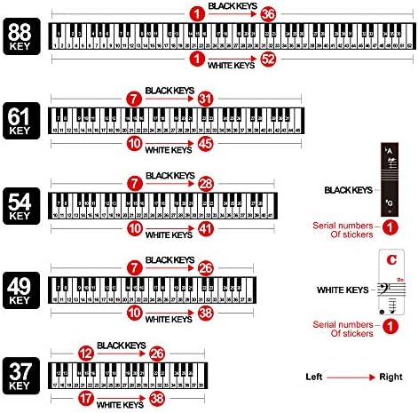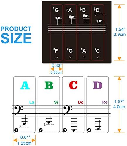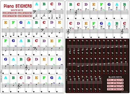 Learn piano easily with the help of these removable piano keyboard note stickers. Designed by experienced musicians, these stickers are a great teaching tool for piano teachers and a helpful aid for kids and beginners. The package includes stickers for both white and black keys, suitable for all 88/61/54/49/37 key pianos and keyboards. The stickers are durable, with letters printed on the backside to withstand constant finger impact and ensure readability. They are waterproof and easy to clean with a damp cloth. The adhesive is clean and durable, allowing for multiple removals and reapplications without leaving any residue. The stickers are thin and barely noticeable when playing, providing a comfortable feel and making it easy to practice techniques like portamento and arpeggios. The large, clear letters make it easy for kids to learn and memorize note positions. Ideal for beginners and aspiring pianists.