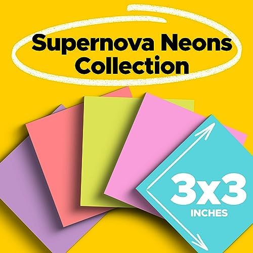 Post-it Super Sticky Notes, 3×3 in, 24 Pads, 2x the Sticking Power, Supernova Neons, Bright Colors, Recyclable