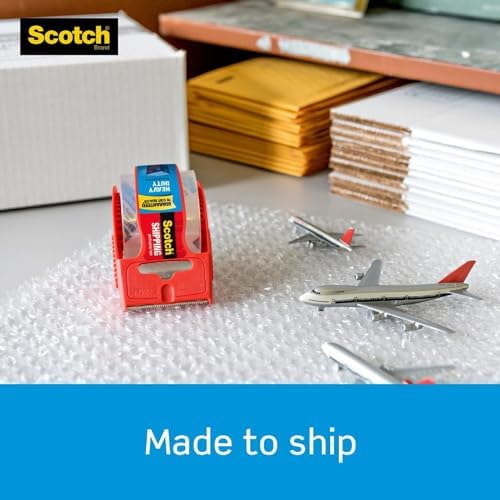 Scotch Heavy Duty Shipping Packaging Tape is designed to withstand rough handling and secure even the heaviest packages. The solvent-free hot melt adhesive provides a strong hold on all box types, including 100% recycled boxes, and resists splitting and tearing. The tape is clear to the core and has a durable thickness of 3 mil. With just one strip per seam, you can save time and ensure your packages stay sealed through it all. The included dispenser features fall-back tabs to prevent the tape from falling back on the roll and is hassle-free for easy use. Plus, Scotch Heavy Duty Packaging Tape is guaranteed to stay sealed, making it the top-selling and most trusted brand in the USA for packaging tape.