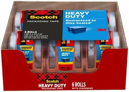 Scotch Heavy Duty Packaging Tape, 1.88″ x 22.2 yd, Designed for Packing, Shipping and Mailing, Strong Seal on All Box Types, 1.5″ Core, Clear, 6 Rolls with Dispenser (142-6)