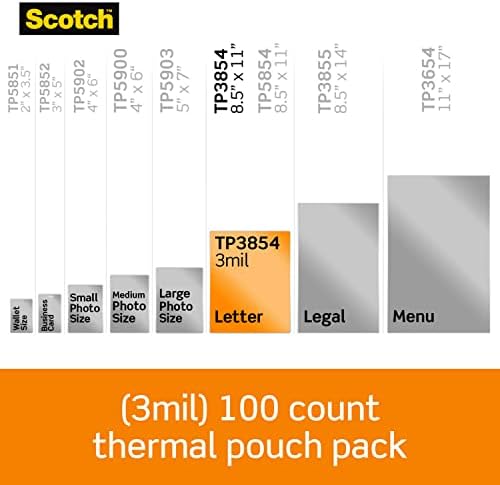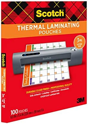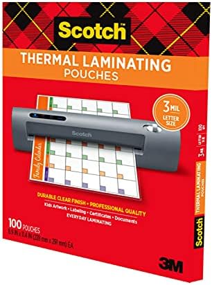 Scotch Thermal Laminating Pouches, For Use With Thermal Laminators, 8.9 x 11.4 Inches, Letter Size Sheets, 100 Count(Pack of 1)