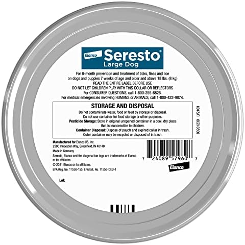 Seresto Large Dog flea and tick collar provides long-lasting protection against fleas and ticks for up to eight months. Veterinarian recommended and trusted by pet owners for nearly a decade, this collar kills and repels fleas on contact, preventing bites and infestations. It also eliminates existing fleas within 24 hours and reinfesting fleas within two hours. Ticks die within six hours of contact and infestations are eliminated within 48 hours. The collar protects against common pests like deer ticks, American dog ticks, brown dog ticks, and Lone Star ticks, as well as chewing lice and Sarcoptic mange. Odorless, non-greasy, and water-resistant, this collar is suitable for dogs at least 7 weeks old and does not require a prescription. It is a hassle-free and effective solution for flea and tick control.
