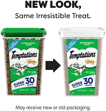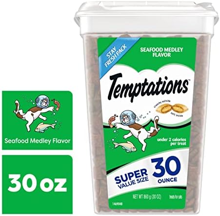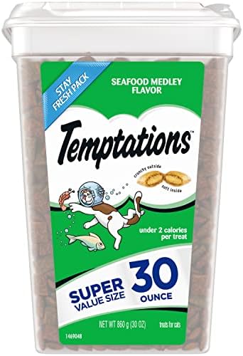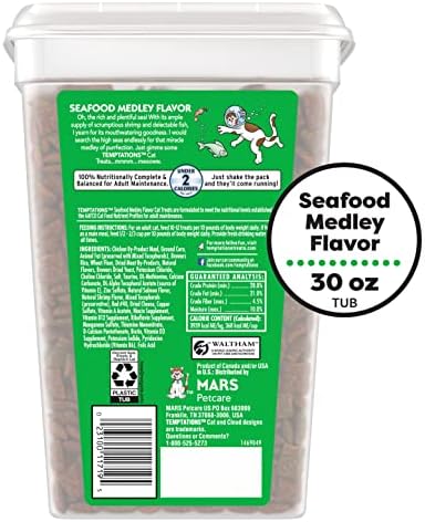 Temptations Classic Crunchy and Soft Cat Treats Seafood Medley Flavor, 30 oz. Tub