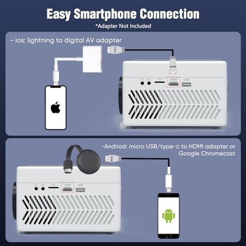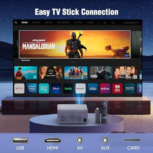 TMY Bluetooth Projector with DVD Player Built in, 1080P Mini Projector, Portable DVD Projector for Outdoor Movies, Compatible with Smartphone/PC/TV Stick/HDMI/AV/USB/TF