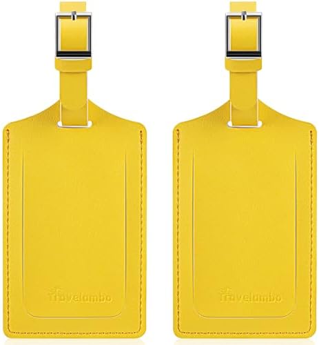 Travelambo Luggage Tag Faux Leather for Suitcase Women Kids Funny Cute (Energetic Yellow)