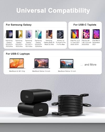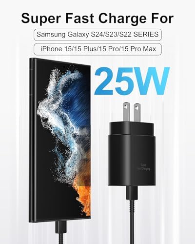Type C Charger Fast Charging,2Pack 25W Phone Super Fast Charger Block with 6.6Ft USB C Charger Cable Compatible with Samsung Galaxy S24 Ultra/S23/S22/S21/S20/iPhone 15/15 Plus/15 Pro/15 Pro Max