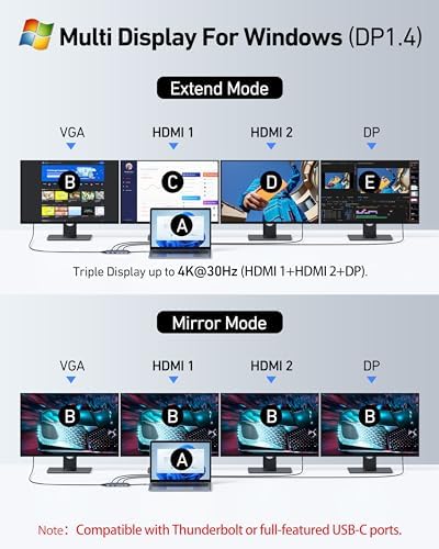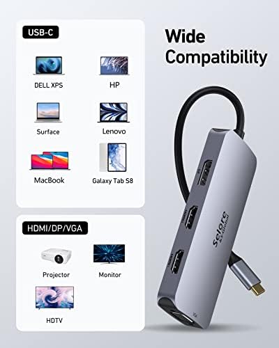 USB C Docking Station Dual HDMI Monitor Adapter, Selore USB C Hub 3 Monitors Adapter with Dual HDMI, Displayport, VGA, 100W PD Charging, 2USB A 2.0,USB C 2.0 Ports Adapter for Dell XPS,HP, Lenovo,etc