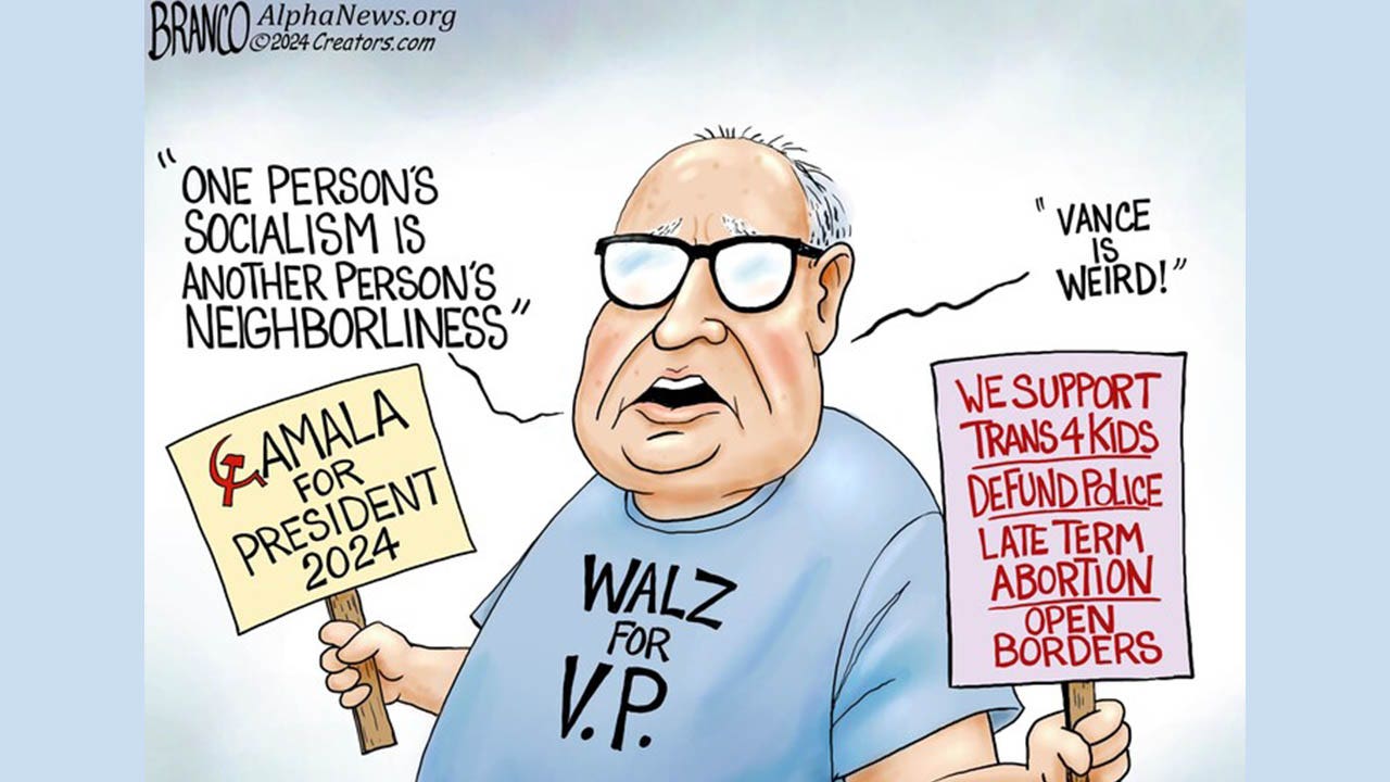 Tim Walz featured in political cartoons