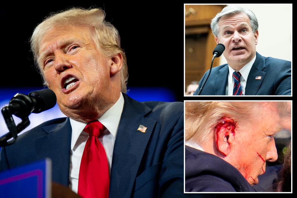 Trump criticizes FBI Director Wray for questioning bullet impact.