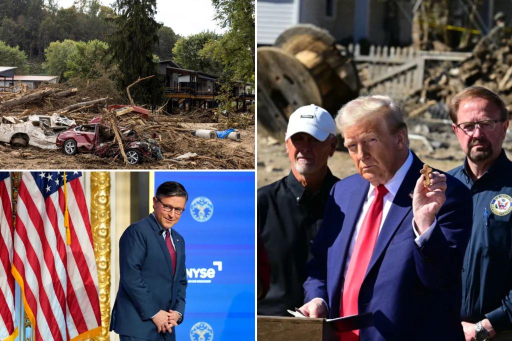 Trump disagrees with Speaker Johnson, wants Congress to return and provide more help for disaster relief.